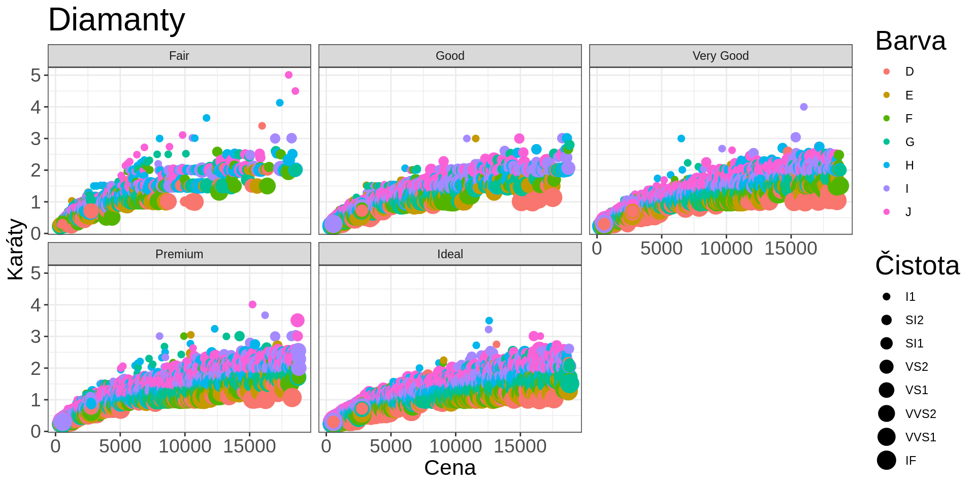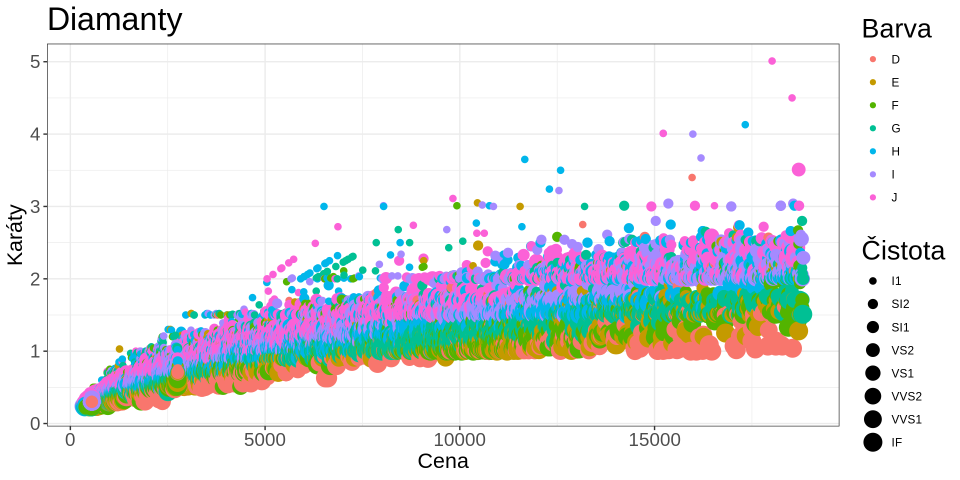 title = "Diamanty", x = "Cena", y = "Karáty",
